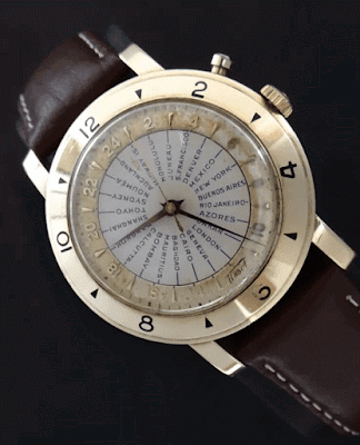 En 1952 Tissot presentó el Navigator "El único reloj que señala automáticamente la hora exacta en todas las partes del mundo"